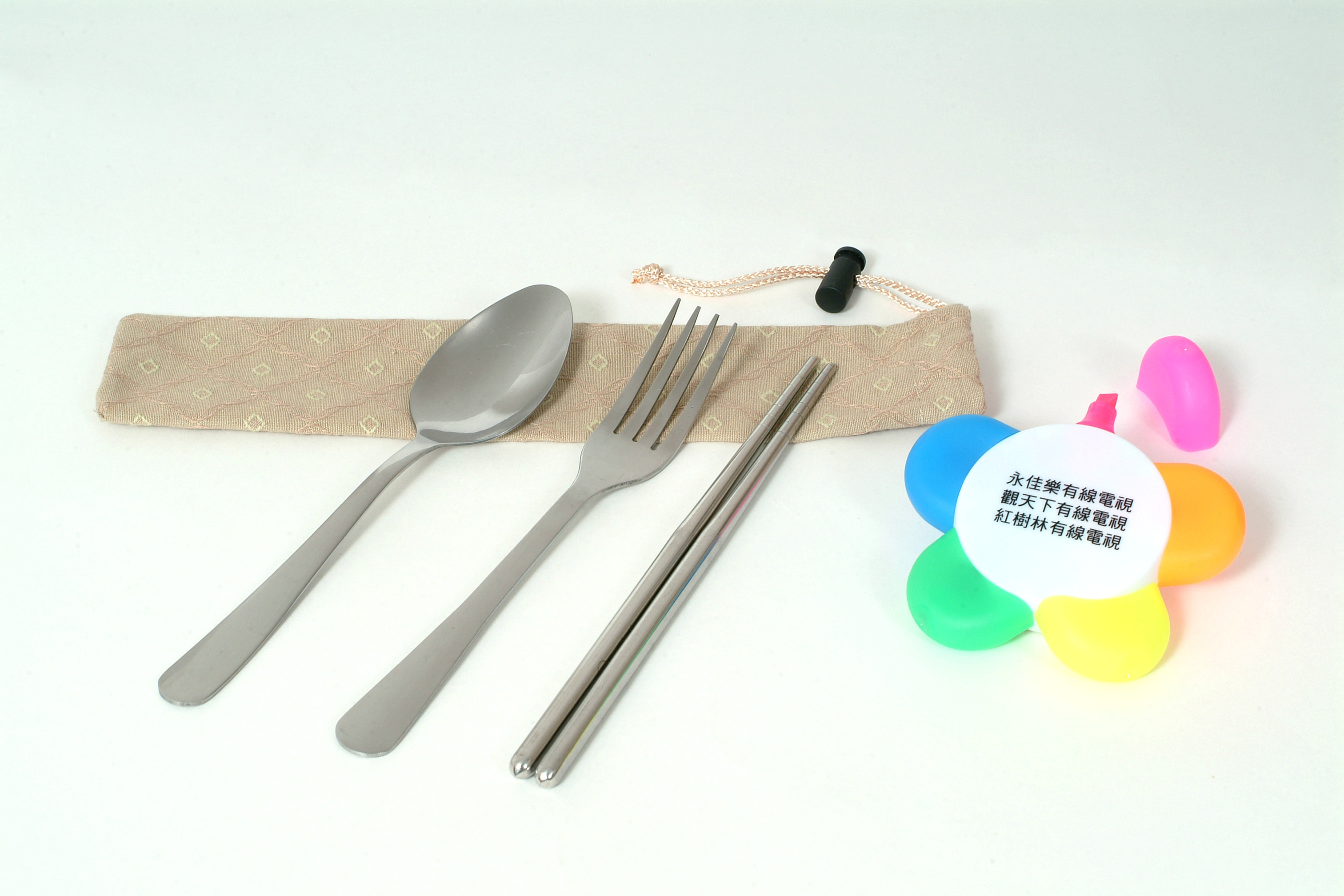 台固媒體 環保餐具及五色花瓣螢光筆