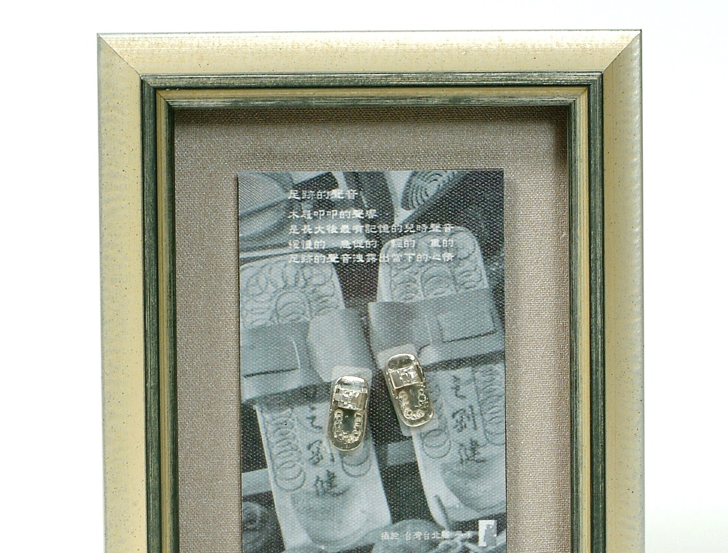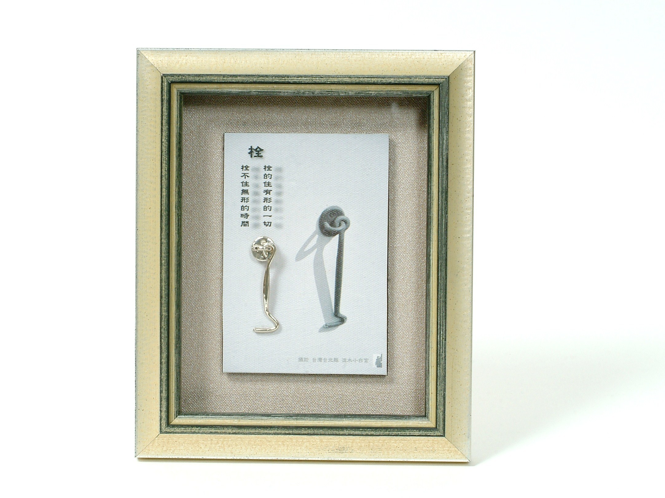 - 說 明︰『日的夜是月的晨 原是交錯的循環 卻在寂靜的湖中 相望而對談 笑看紅塵天下事 繁華總有落盡時』 將日月潭的宛如圖畫山水,氤氳水氣及層次分明的山景變化 設計成如同拼圖式的風景匯集 並用純銀金工設計日月合體的圖案 如同轉動風車更恰似一輪飛揚的烈日 售價:依需求數量及製作大小報價 全球製作數量:300幅 (本系列作品亦接受客戶指定拍攝地點或選擇圖庫中的圖片重新製作,並以拍攝內容做客製化金工設計及裱褙服務,每幅價位依專案內容報價)