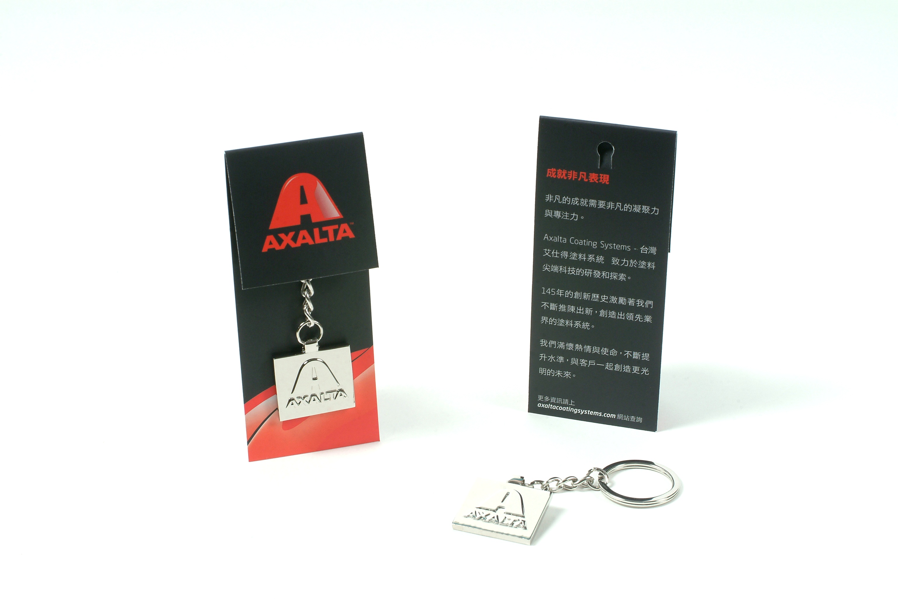 • 說  明︰為杜邦獨立的新事業體公司以新的企業識別系統製作的金屬鎖圈,以鋅合金材質製作,Logo凸版效果,作為開幕的禮物。可依客戶的Logo做不同的表面處理及凹凸版設計,客製化開模及包裝設計。
