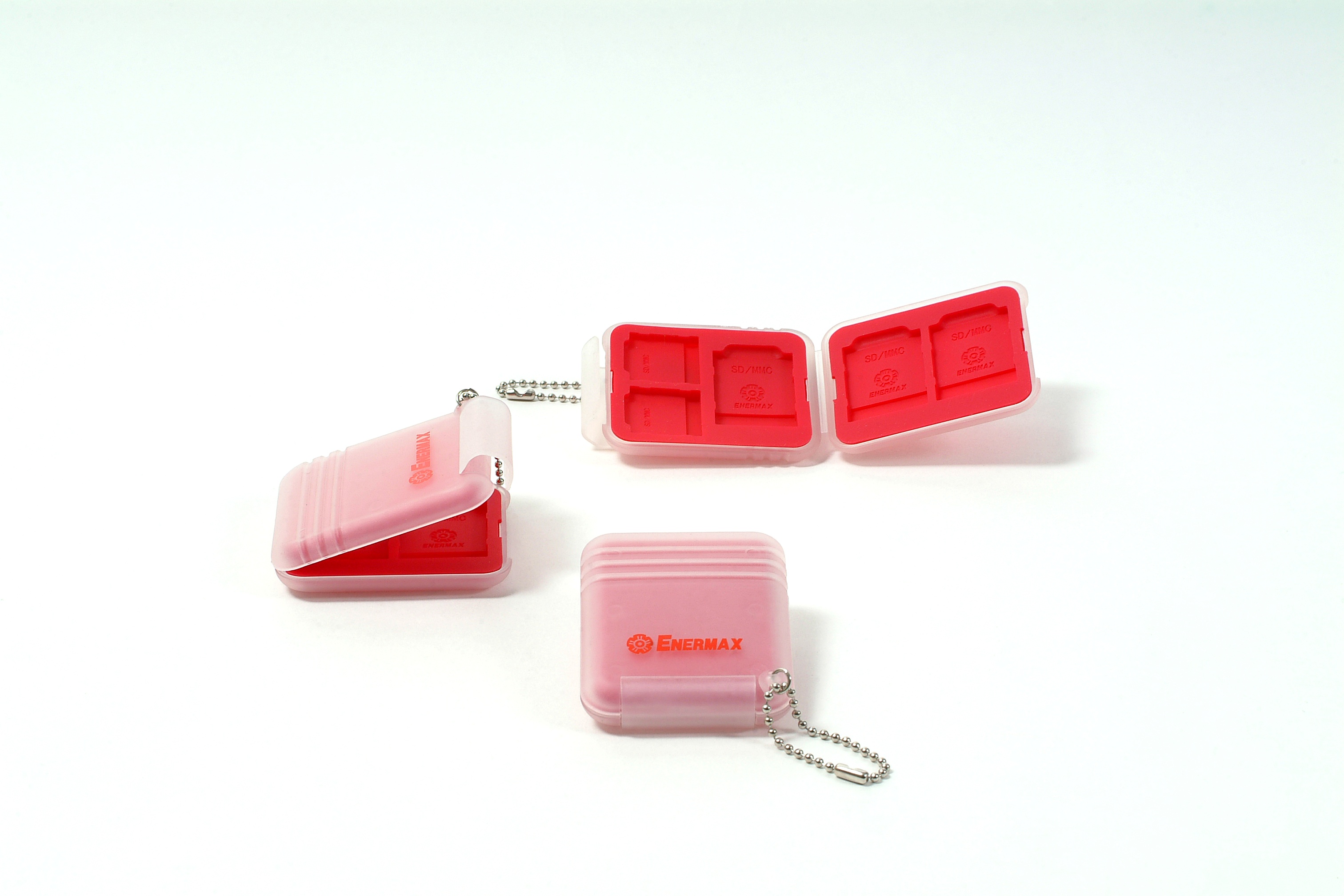 • 說  明︰『保銳科技股份有限公司』是全球主要生產電源供應器的製造廠商之一,以自有品牌 ENERMAX ,成功行銷於全球的電腦市場,為參加六月份的資訊業大展Computex (台北國際電腦展) ,委託『微觀創意』製作贈品,以PP材質搭配矽膠開模製作記憶卡收納盒,盒面的波浪紋路除增加設計感又方便取握, PP透霧材質再加上矽膠具年輕感,以珠鍊配掛可隨身配帶,盒內可放三片SD/MMC卡及二片Mini SD/MMC卡,收納功能十足,是一項非常貼心的精巧贈品。
