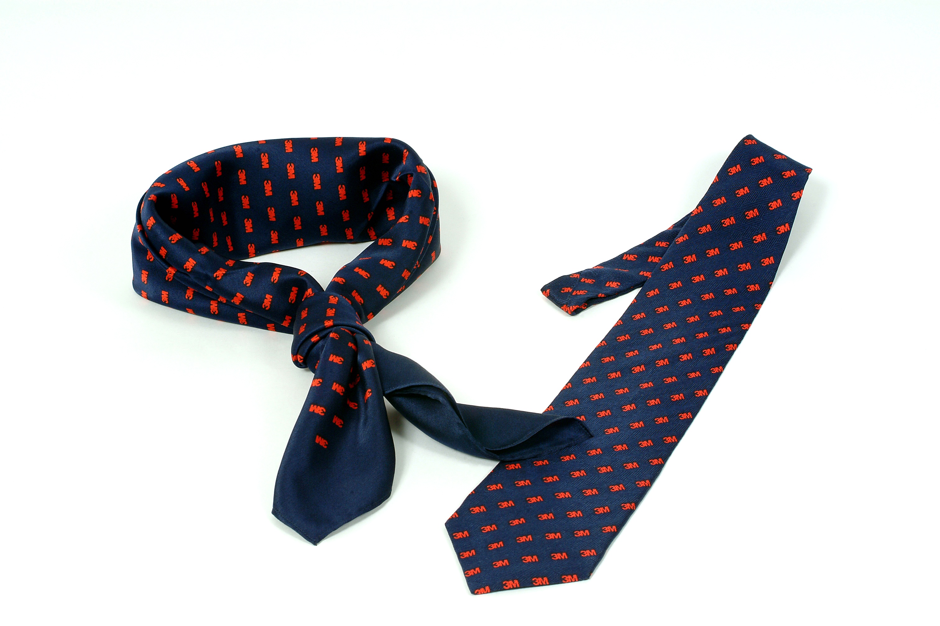• 說  明︰美商 3M 為讓同仁在展覽或行銷活動時有一致的公司形象,特委由微觀創意發包製作領帶及領巾,由於選用真絲材質製作,在印刷時要考慮布質的延展性會造成印刷的困難度,拉長了製程的時間,以藍色搭配 3M Logo 做成斜條紋路,讓企業識別更清楚,搭配黑色 Logo 燙銀紙盒,亦是送外賓的好禮物。