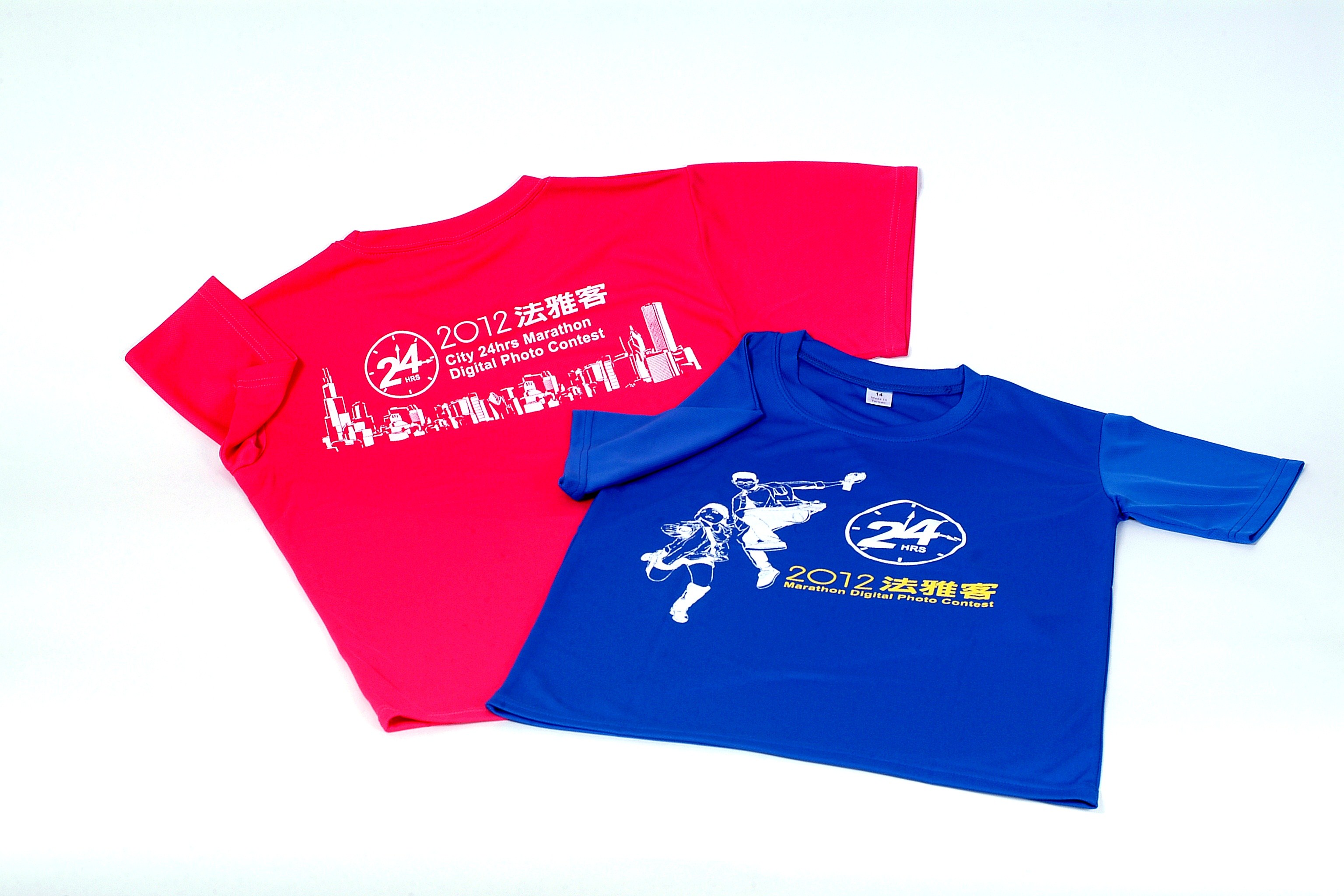 • 說  明︰客戶每年均會舉辦攝影比賽活動,以桃紅色及藍色做為台北及台南二個地區的選手服及工作人員的衣服,因是盛夏的活動,故選用排汗布製作,涼爽透氣質地輕柔。