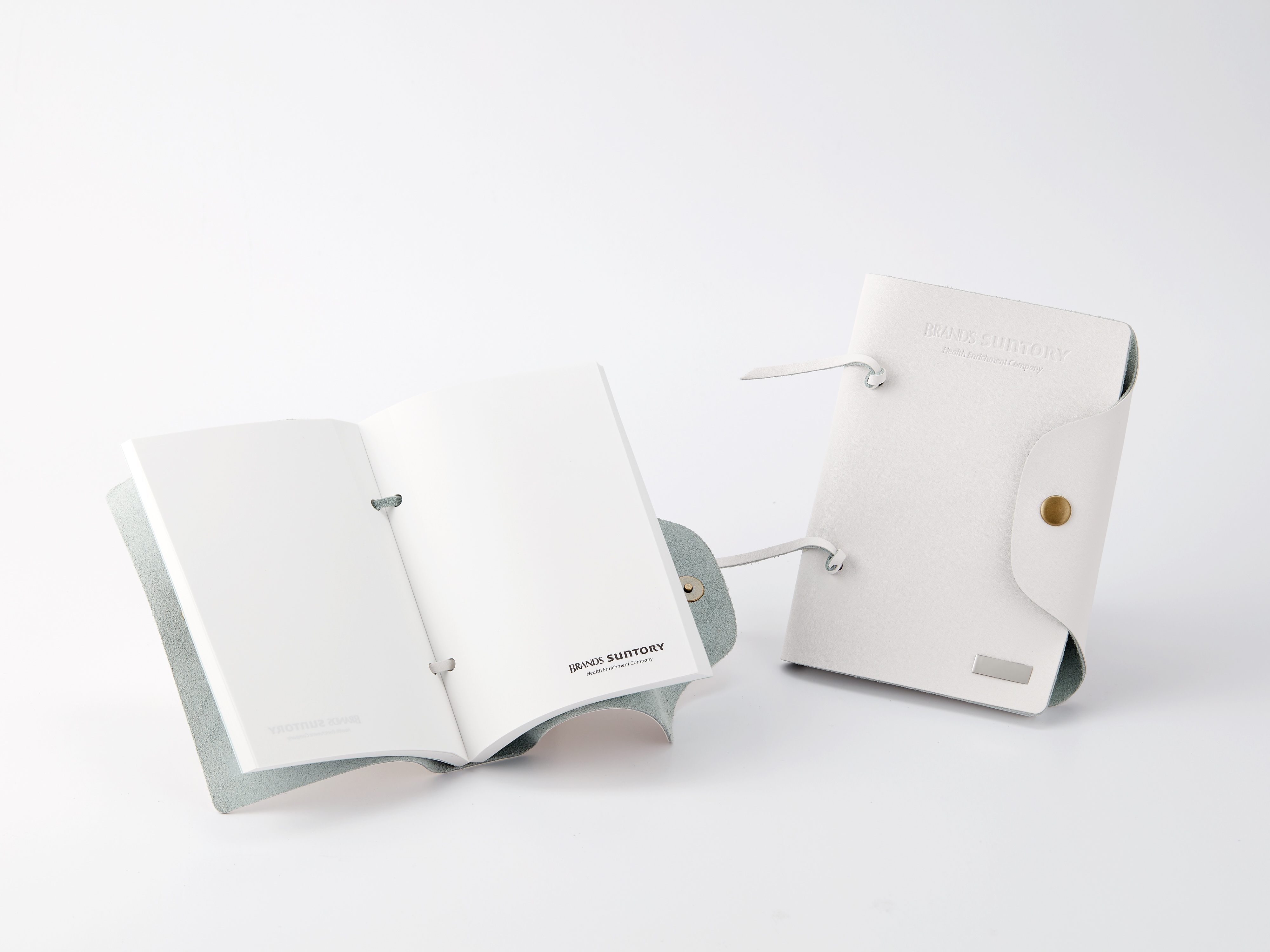 內頁以特殊的環保紙張:「石頭紙」印製,封面印上企業的文化Slogan,以白色牛皮設計綁繩式外皮,與企業色呼應,外皮上有製作人名銘版,是送給員工的好禮物。