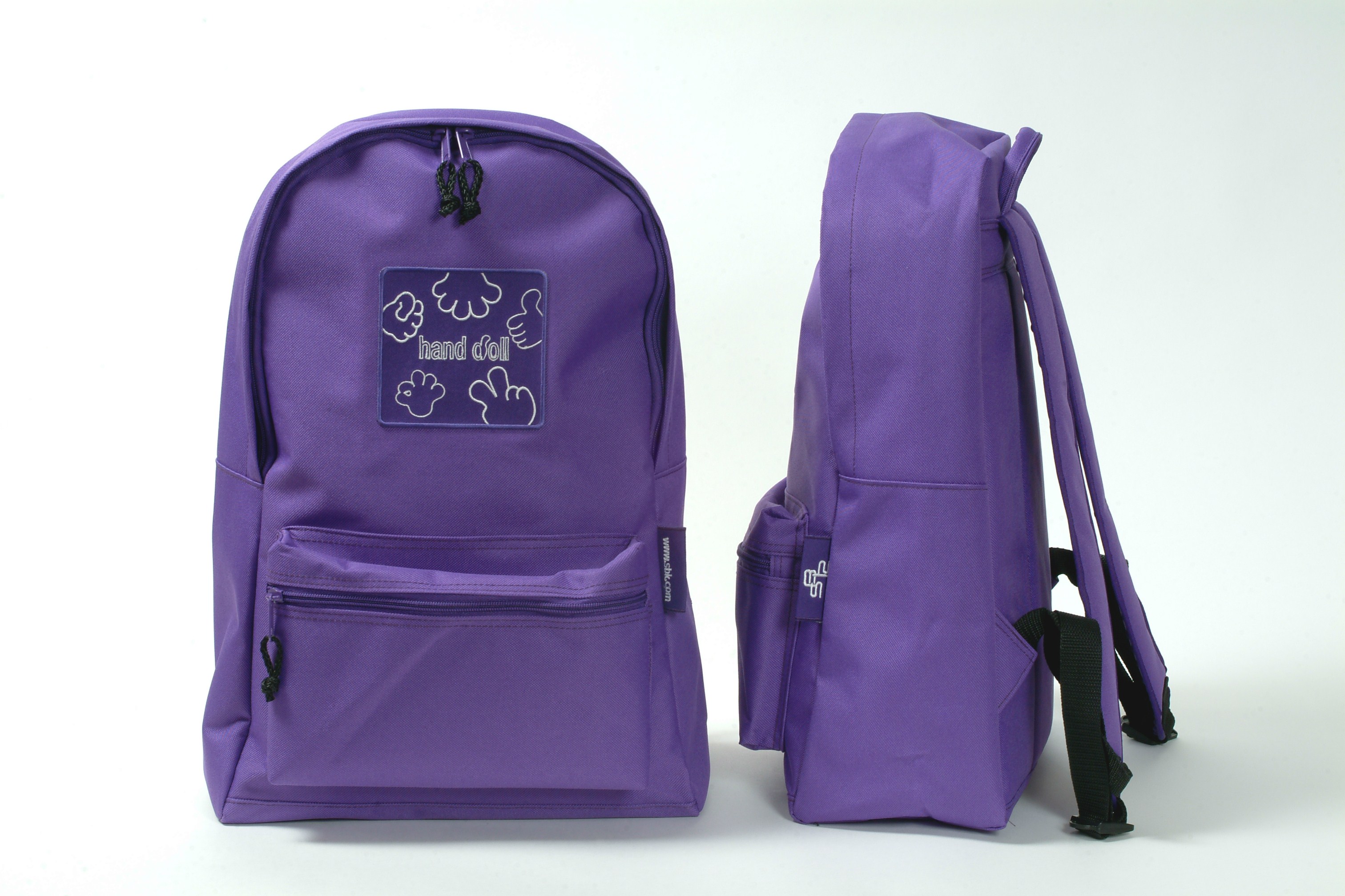 • 說  明︰以紫色尼龍布為材質,設計一款青少年喜愛的後背包,以手勢Hi為圖騰,如年青人熱情又High的調性,以布標來強化品牌訊息,從布料到車製全部台灣製造(MIT)。