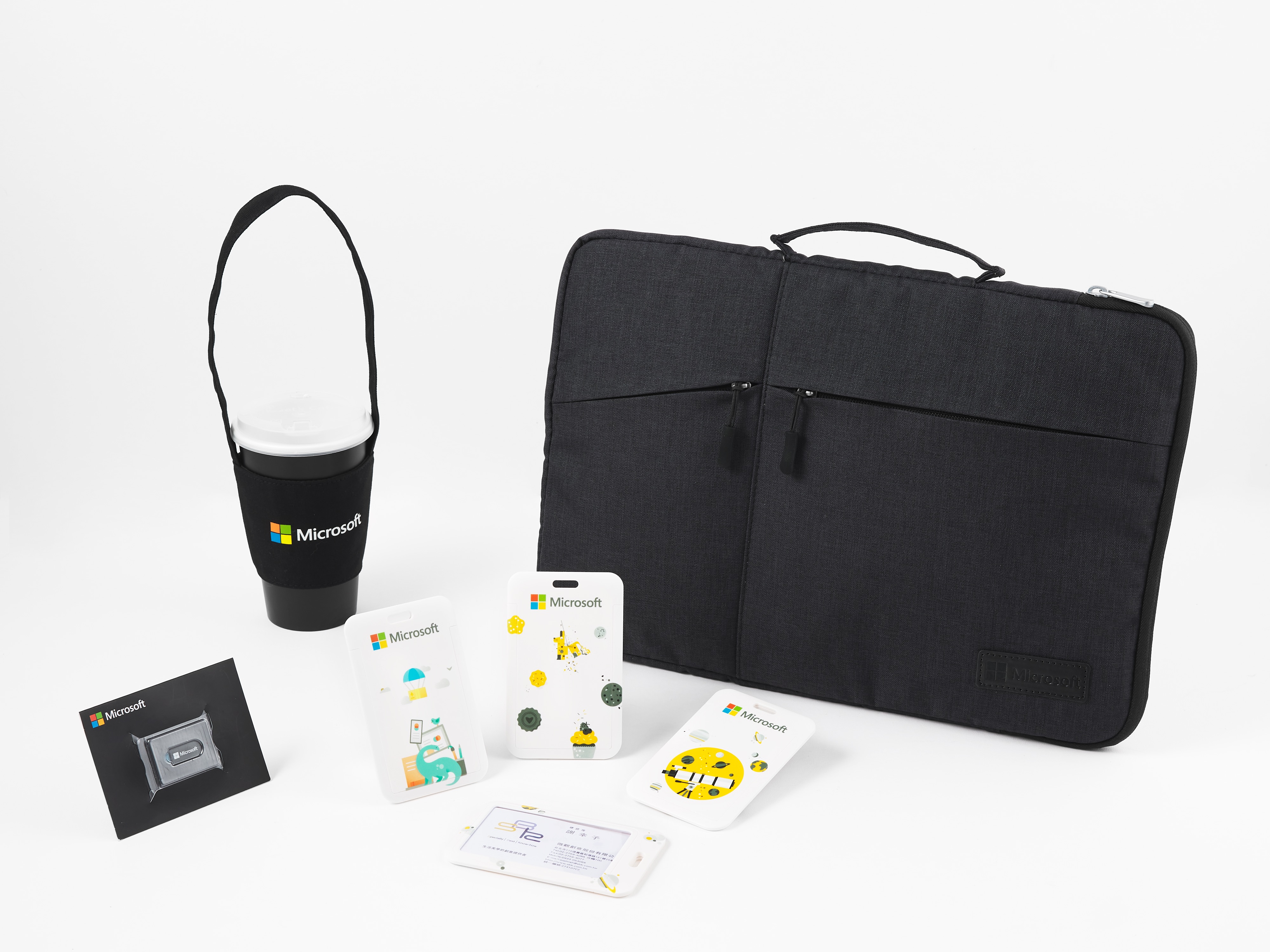 • 說  明︰為新進員工準備的電腦包、彩印識別證帶及卡套、杯套、Webcam cover,是很貼心的禮物。